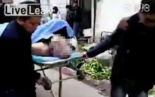 El chocante vídeo, que ha sido compartido miles de veces en Internet, muestra al hombre tirado en una camilla y cubierto con una sábana mientras debajo de ésta se alcanza a vislumbrar el contorno de lo que parece ser una mujer.