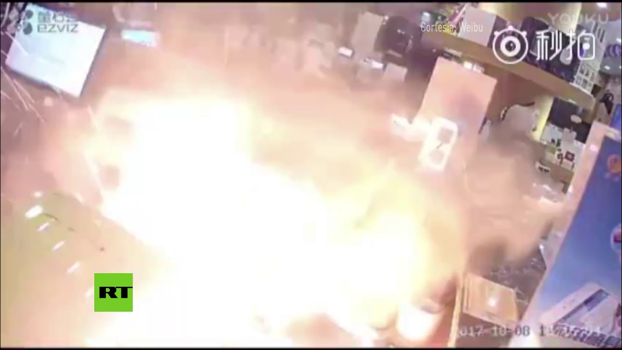 La cámara de seguridad de la tienda captó el momento en que se abre el teléfono y comienza salir humo y fuego.