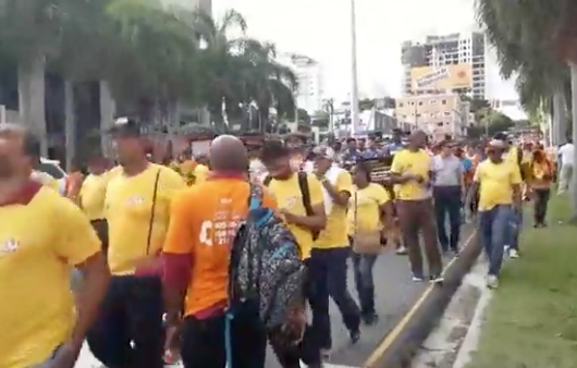 Durante la marcha, convocada por el Ministerio de la Mujer, los hombres portaban pancartas y vociferaban varias consignas como: “deportes sí, violencia no”.