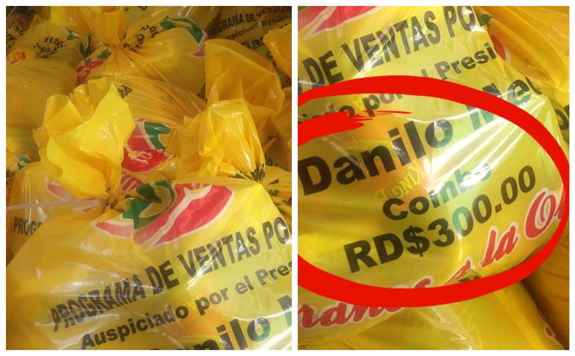 «El combo contiene 5 libras arroz, 2 libras de habichuelas, una botella de aceite de 16 onzas, harina de maíz, salsa de tomate (8 onzas), dos latas de sardinas, 2 libras de azúcar crema, chocolate, ajo en pasta, sazón en polvo, espagueti, avena y casabe, por RD$300 pesos», publicó en su facebook la comunicadora Liz Cruz.