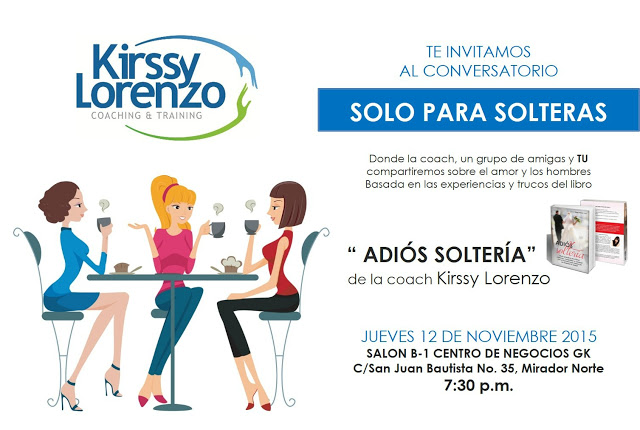 Si te ha pasado o tienes muchas interrogantes rondando tu cabeza, este próximo jueves 12 de noviembre, la coach Kirssy Lorenzo, estará compartiendo con mujeres solteras de cualquier edad, todos los temas sobre el amor y los hombres, que permitirá entender sus maneras de amar y y donde encontrar la verdadera felicidad.