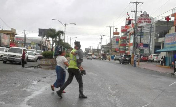 El gesto solidario de un agente de Amet que ayudó a una señora, cargando su niño -quizás nieto- a cruzar una avenida en Santo Domingo Este, fue un «tema del momento» en Twitter iniciando esta semana.