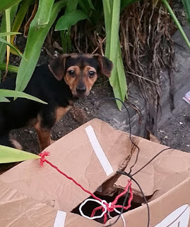 El perro en la imagen «vela» el cuerpo sin vida de su hermanito, atropellado tras ser arrojados ambos en una caja de cartón desde un carro que pasó por la calle Central de la Urbanización Costa Brava, al lado de La Feria.