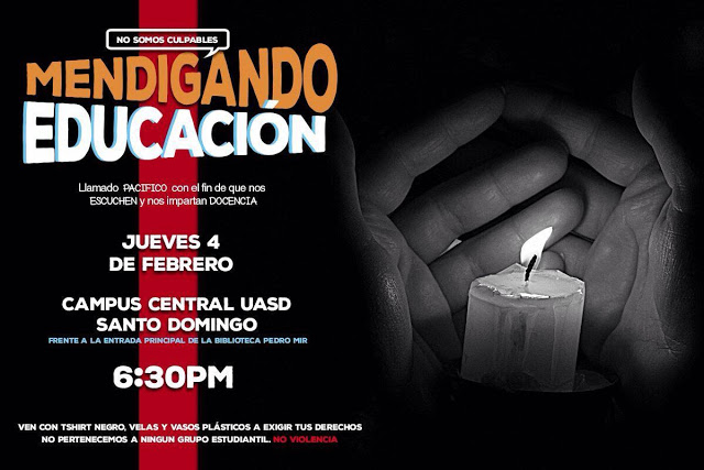 Exhortaron a los «uasdianos» divulgar y apoyar la causa #YoExijoDocencia y ese día -frente a la Biblioteca Pedro Mir- vestir con t-shirt negro, llevar vasos plásticos y velas.