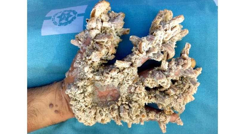Mohamed Taluli (42 años) llegó al Hospital Hadassah en Jerusalem con grandes protuberancias en sus manos, causadas por una infección del virus del papiloma humano informó el centro médico en un comunicado.