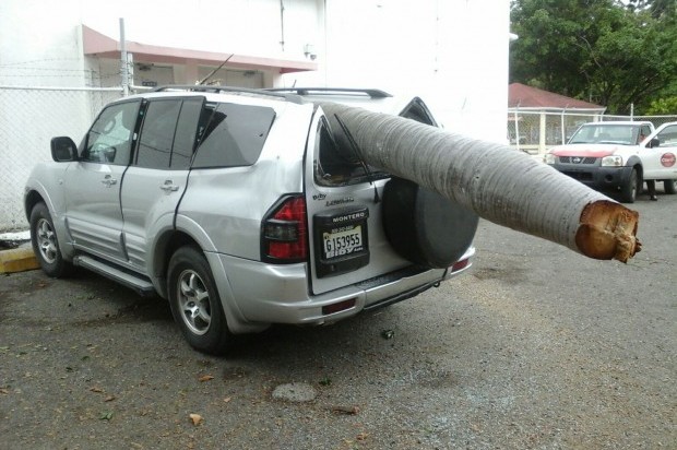 Una mata de planta se desplomó y casi aplasta a dos vehículos en un parqueo de una empresa de comunicaciones en Puerto Plata.