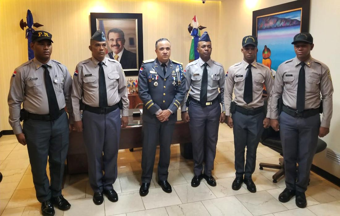 Los cinco policías, fueron recibidos por Bautista Almonte quien los felicitó honrosamente por su actuación al manejarse conforme a las leyes constitucionales y los reglamentos de la institución del orden con gallardía y profesionalidad.
