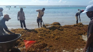Recogen algas en playa Boca