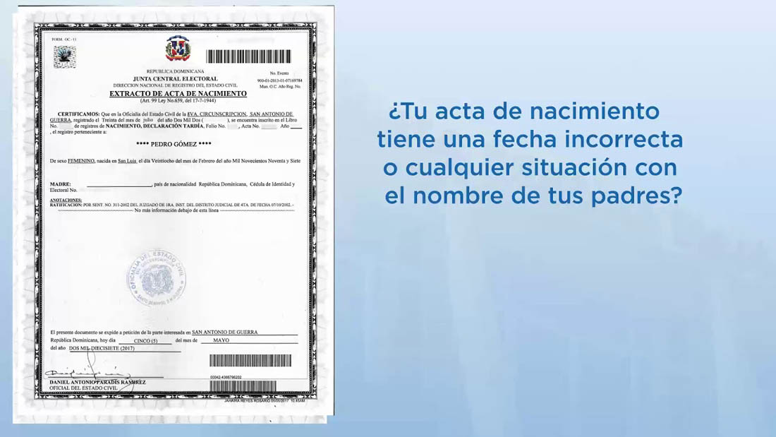 En 2017, amparado en la Ley Orgánica (29-11) el Tribunal Superior Electoral (TSE) rectificó unas 6 mil 250 actas del Estado Civil, pero como leyeron al principio son cientos de miles de actas que tienen algún fallo.