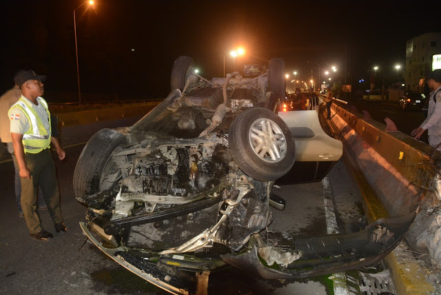 Al parecer el chófer no tuvo visibilidad y chocó de frente con el muro divisorio en el paso elevado a la entrada de la ciudad, cuando regresaban del Aeropuerto Internacional de las Américas en Santo Domingo.