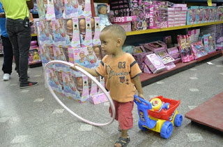Este hombre, que viven en el extranjero, ayer se encontraba en un centro comercial de esta capital haciendo un pedido de 500 juguetes que serán entregados a igual cantidad de niños del citado municipio.