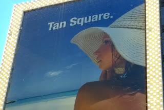Si observan la imagen del letrero, el mensaje tiene como doble sentido o figuración en la palabra «Tan square» , muy típico en dominicanos mencionando el famoso «Times Square», pero con la idea de que República Dominicana es la «plaza del bronceado», ya que traducido al español «tan» es bronce o bronceado.