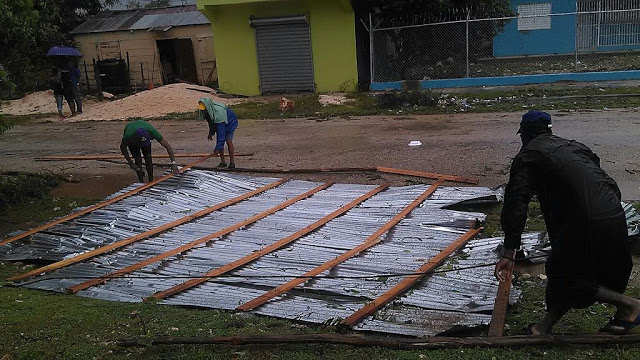 El fenómeno que derribó arboles, techos y paredes de varias casas, ocurrió cerca de las 2:00 de la tarde de este lunes. Además las fuertes brisas tumbaron una torre metálica con antenas de emisoras de radio.