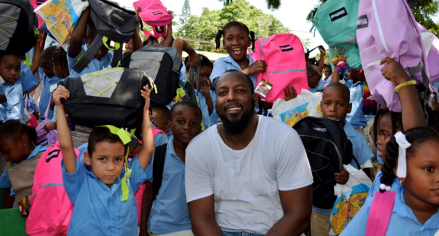 Vladimir Guerrero entrega útiles escolares en su comunidad